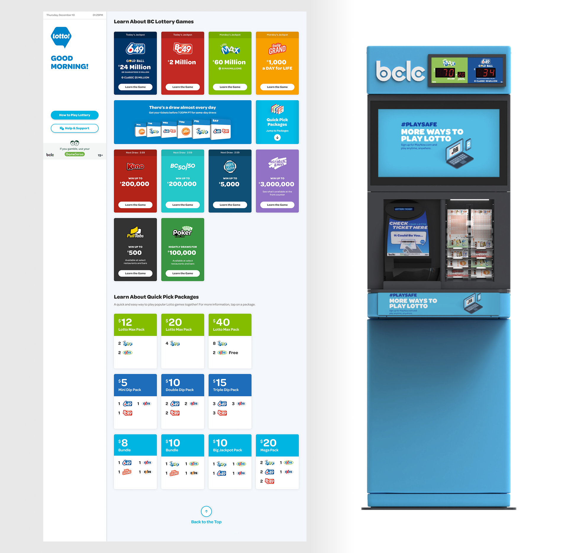 Digital Menu BoardsThese retail experiences are designed to capture player’s imagination in a retail setting. The dual 65” screens allow lotteries to showcase engaging video content with dynamic information and automated playlists that adapt based on different conditions. I was responsible for all design work as well as defining the logic that goes behind the automated playlists.