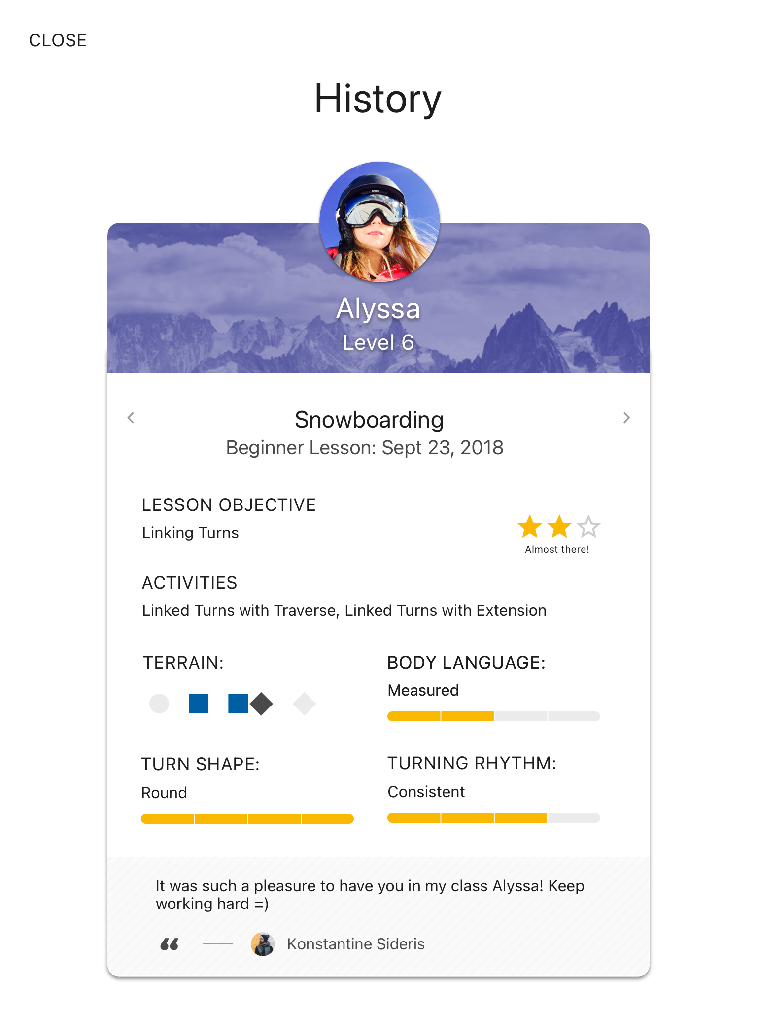 SnoFolioThe SnoFolio tool allows ski and snowboard instructors a tool to assess students and provide feedback as they progress through lessons.